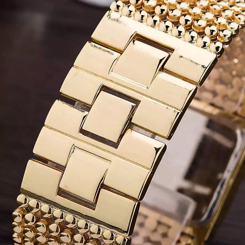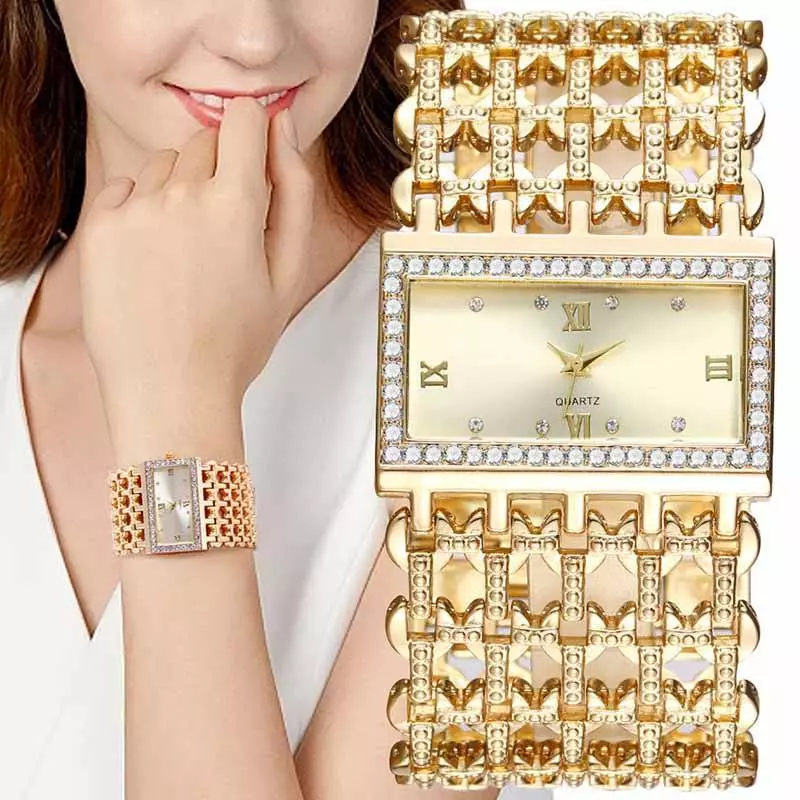 Elevate your everyday style with this elegant gold-tone bracelet watch, designed to combine luxury and functionality. Featuring a rectangular dial framed with sparkling crystal accents and a beautifully detailed link bracelet, this timepiece adds a sophisticated touch to both casual and formal outfits.
